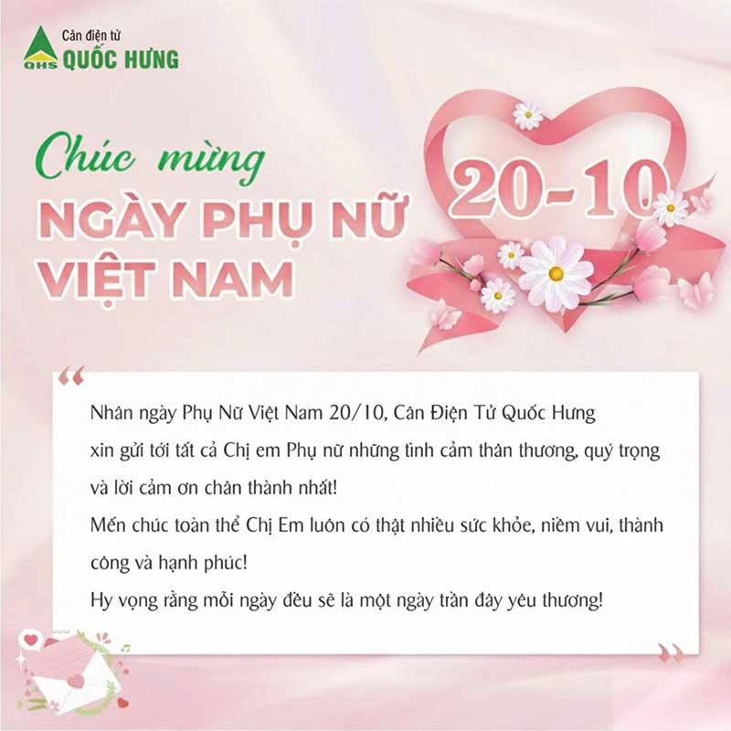 🎉 Nhân dịp Ngày Phụ nữ Việt Nam 20/10, Công ty Cân điện tử Quốc Hưng xin gửi đến toàn thể chị em phụ nữ – những người luôn góp phần tạo nên hạnh phúc và thành công trong cuộc sống – lời chúc tốt đẹp, yêu thương và trân trọng nhất 💐